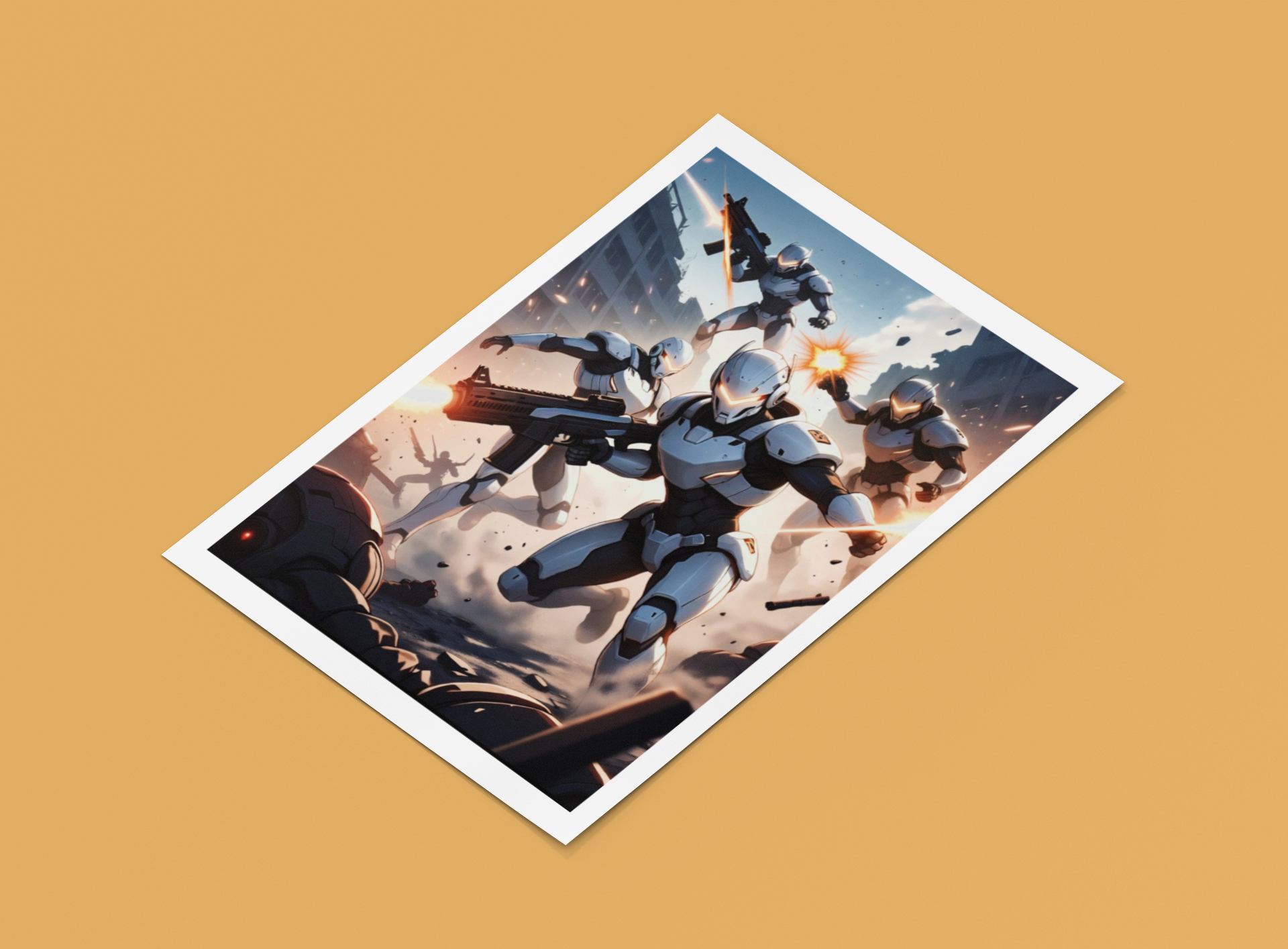 Elite cyber-soldiers storm the battlefield in a futuristic city engulfed by chaos. Their armor glows with precision tech as they fight to reclaim a collapsing world, humanity’s last stand against the machine uprising